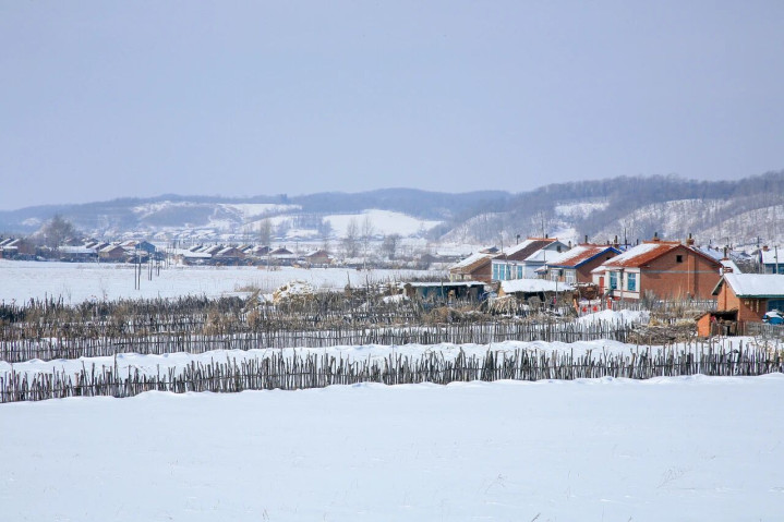 黑龙江双鸭山,远山和雪野,白花花一派。(图/视觉中国)
